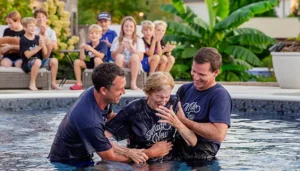 “I told Nate that if she will be baptized, I will come to your house and baptize her in your pool,” Wood recalled.