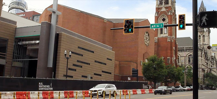 Construction is ongoing at downtown Nashville’s First Baptist Church. The July grand opening of its new addition, canceled due to COVID-19, is now scheduled for Easter Sunday 2021. — Photo by Baptist Press