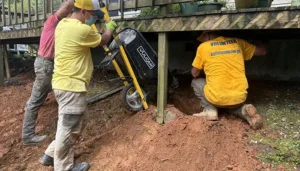 Members of First Baptist Church in Gulfport, Miss., work on a home in Spruce Pine, N.C. on Aug. 19. – Photo by Jimmy Stewart